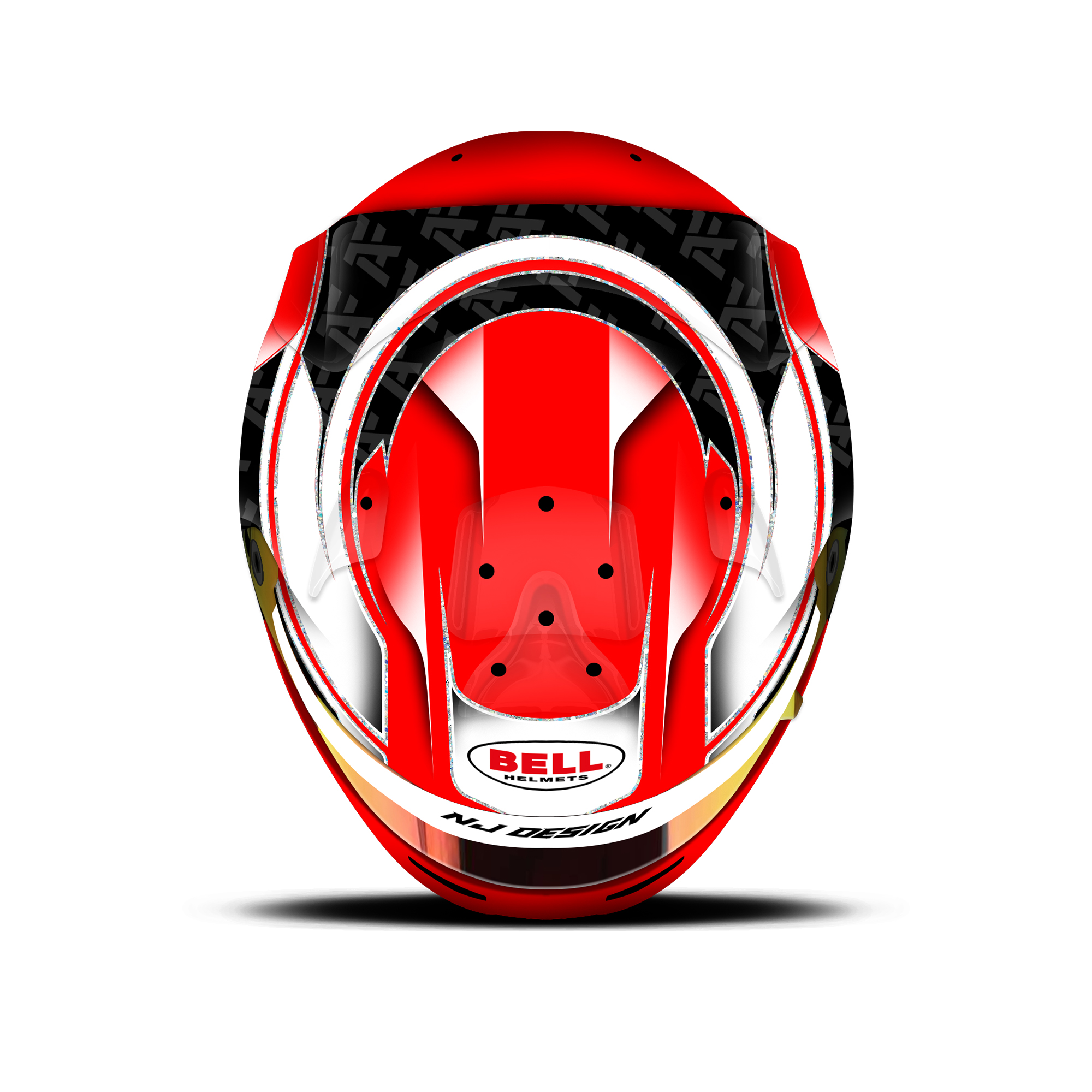 The custom helmet design is designed for Aaron Ferrazzano. The design is made on a Bell HP77 helmet with gloss finish. Below is a description of the helmet design.