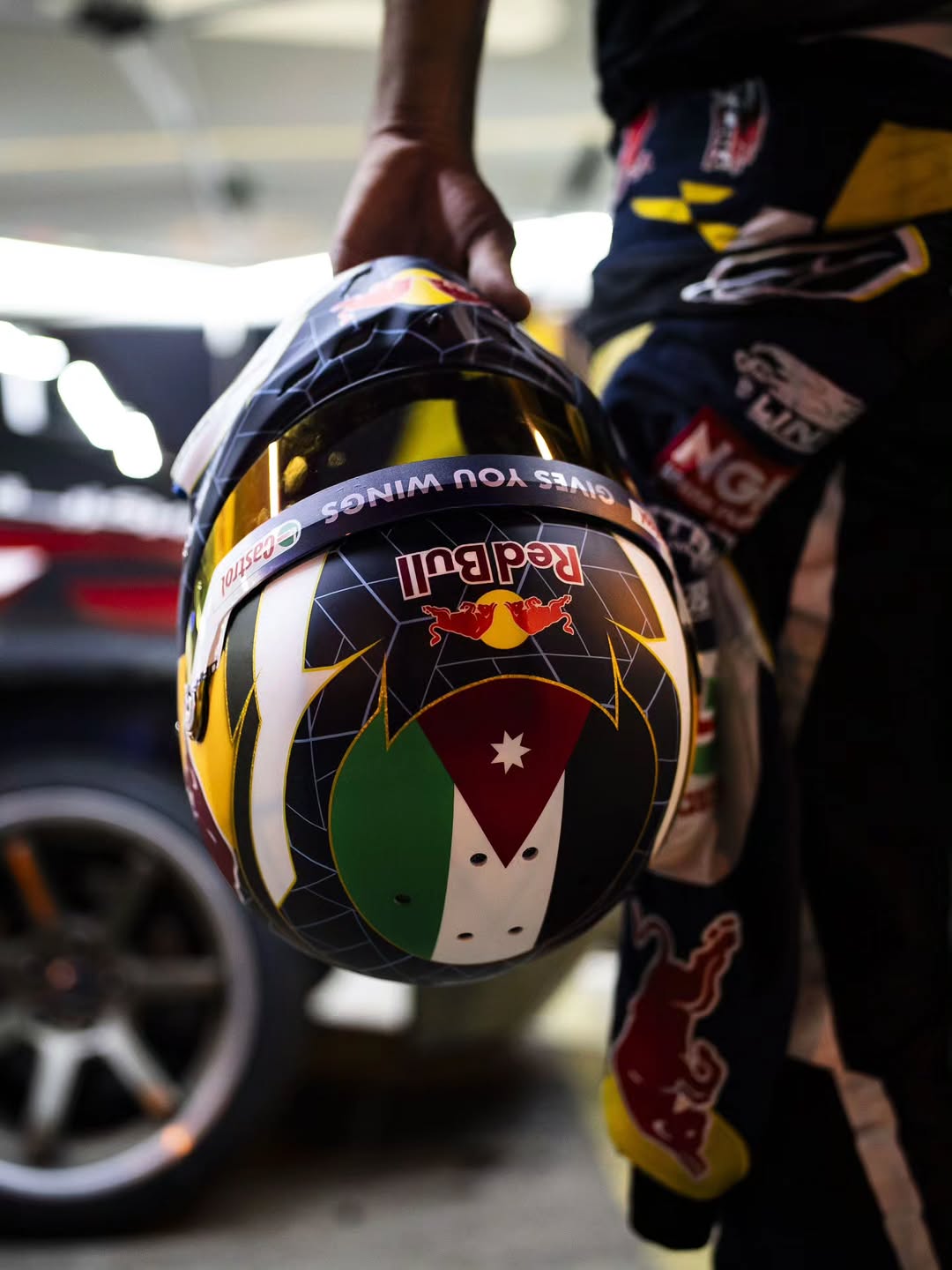 The custom helmet design is designed for Ahmad Daham. The design is made on a Stilo ST6 FN Carbon- 61 8860 with matt finish. Below is a description of the helmet design.