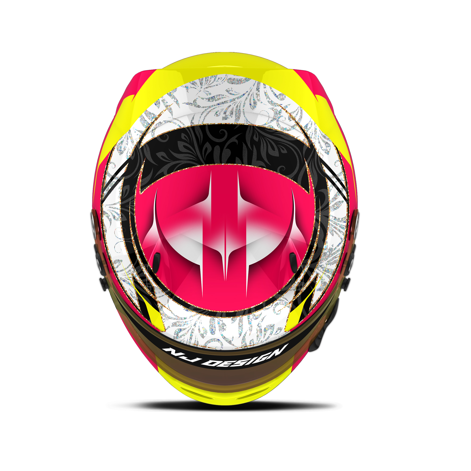 The custom helmet design is designed for Frederik Kikkenborg. The design is made on an Arai SK-6 helmet with gloss and matt finish. Below is a description of the helmet design.