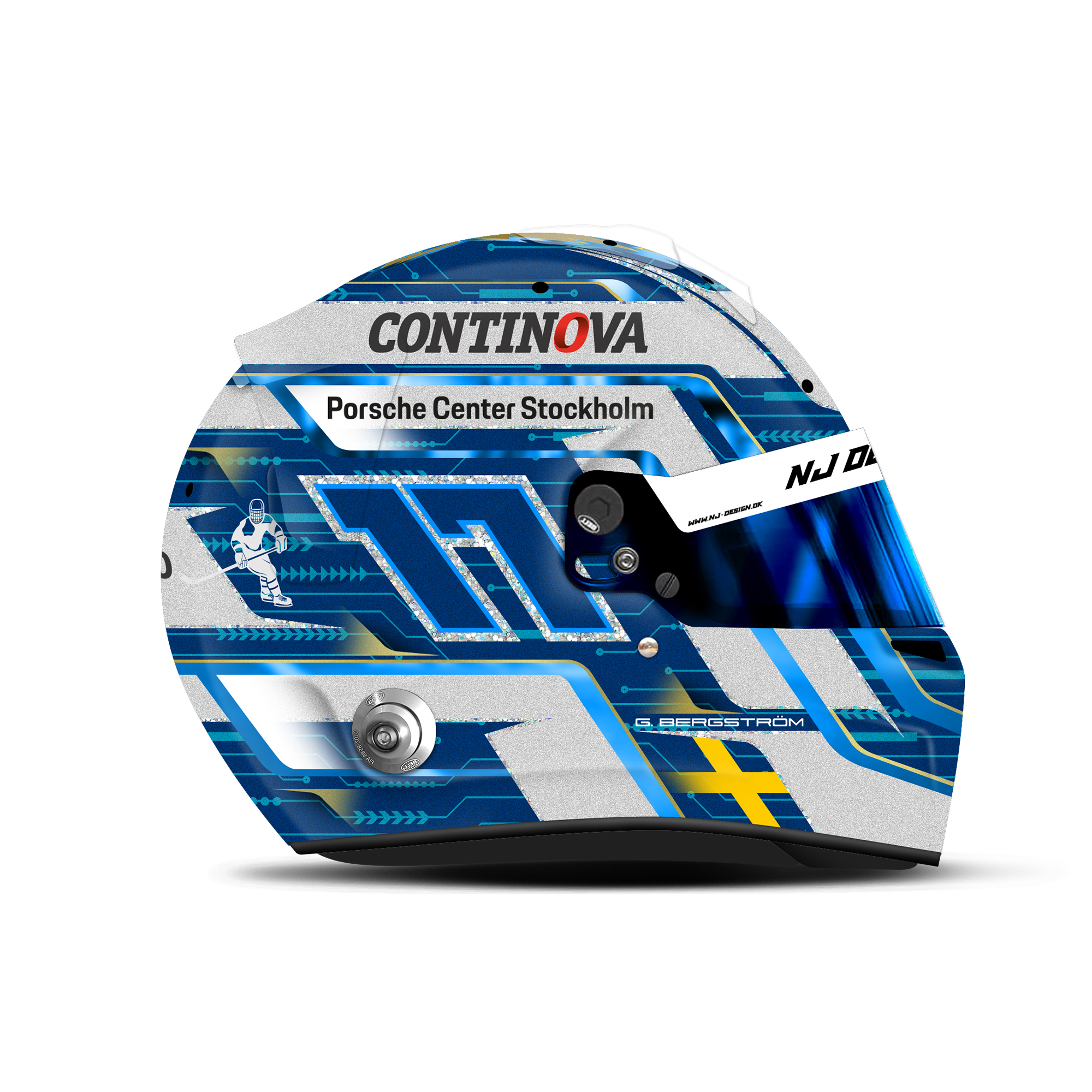The custom helmet design is designed for Gustav Bergström. The design is made on a Bell HP7 helmet with gloss and matt finish. Below is a description of the helmet design.