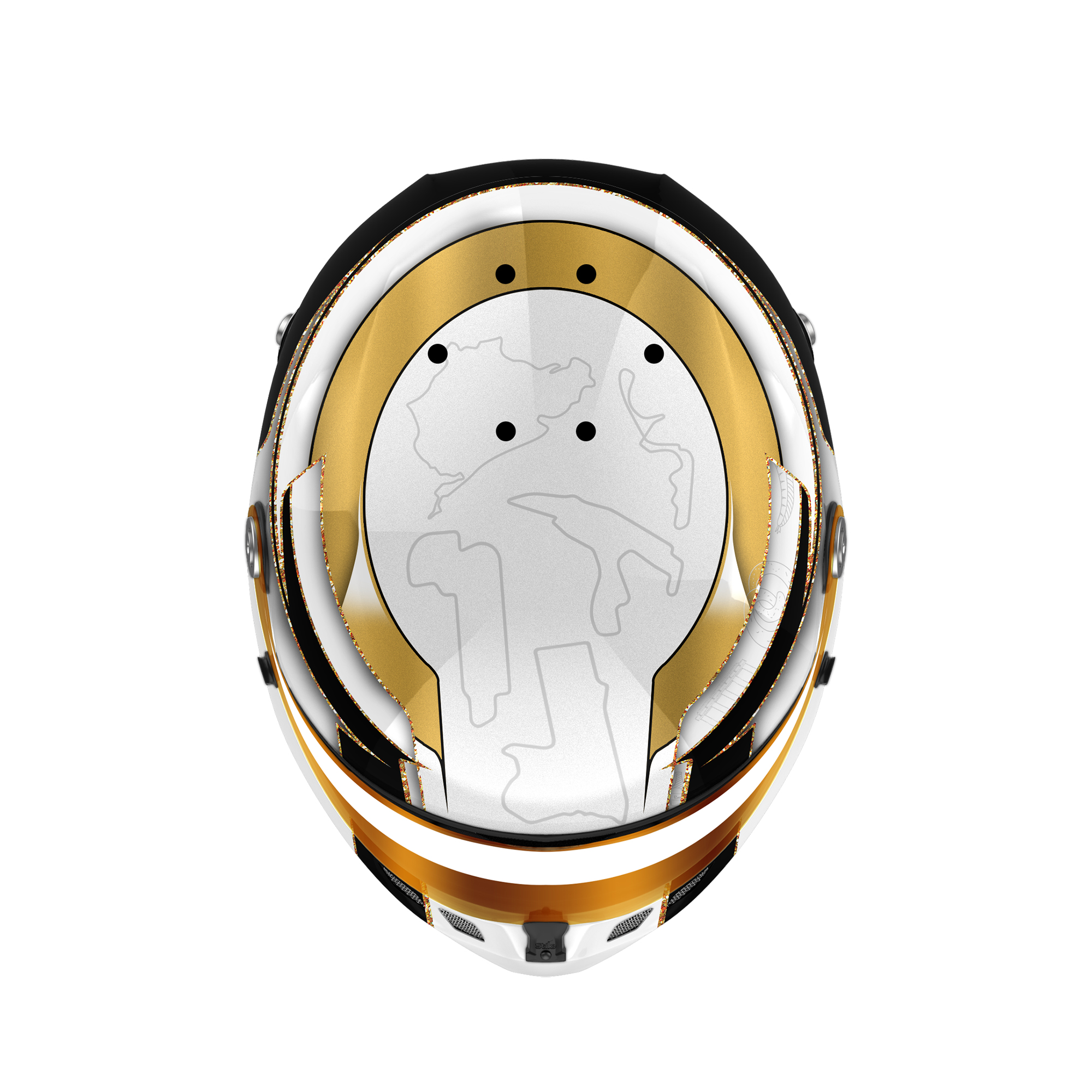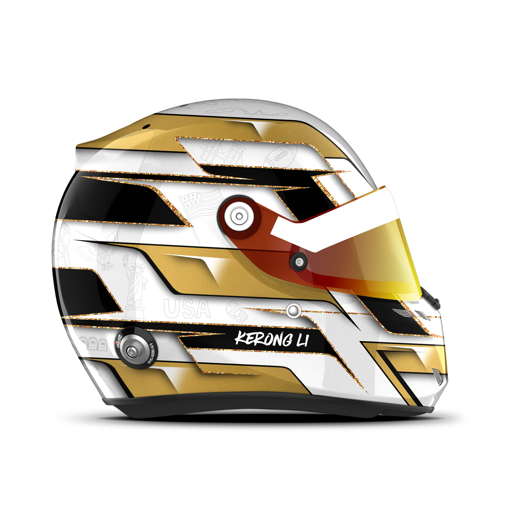 The custom helmet design is designed for Kerong Li. The design is made on a Stilo St6 FN zero Fia 8860 – 18ABP with gloss finish. Below is a description of the helmet design.