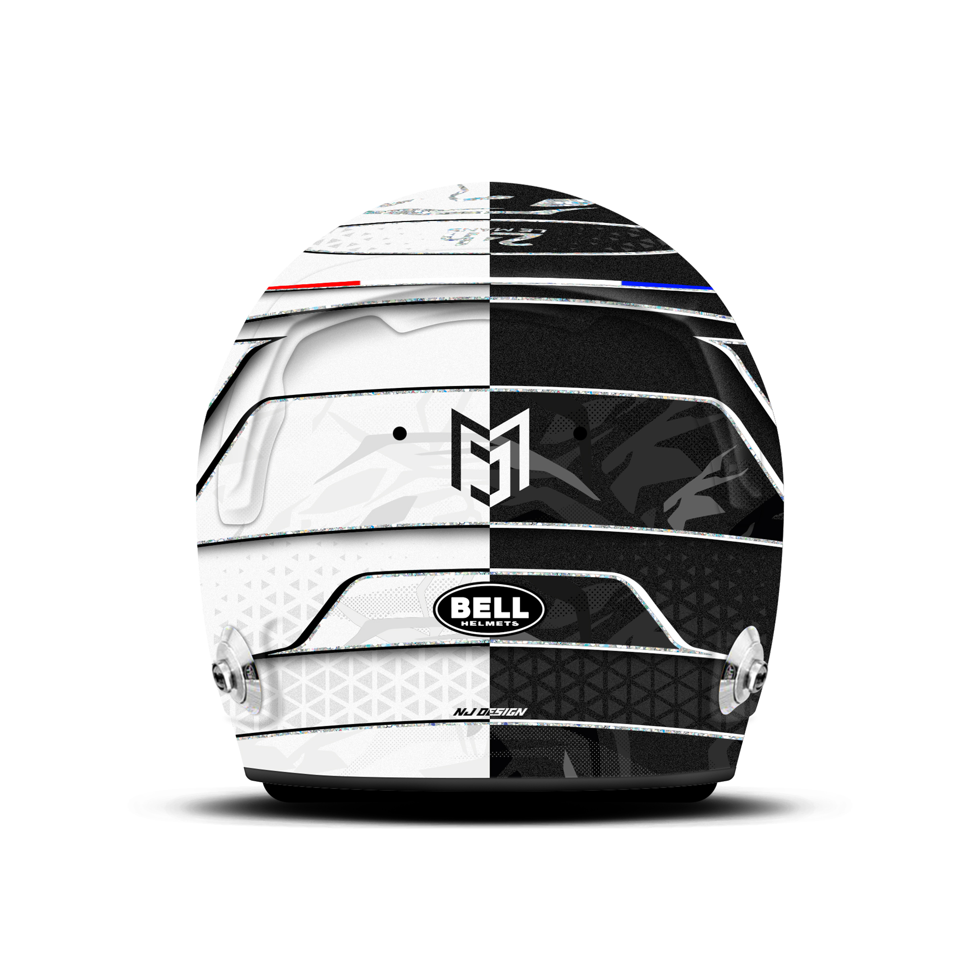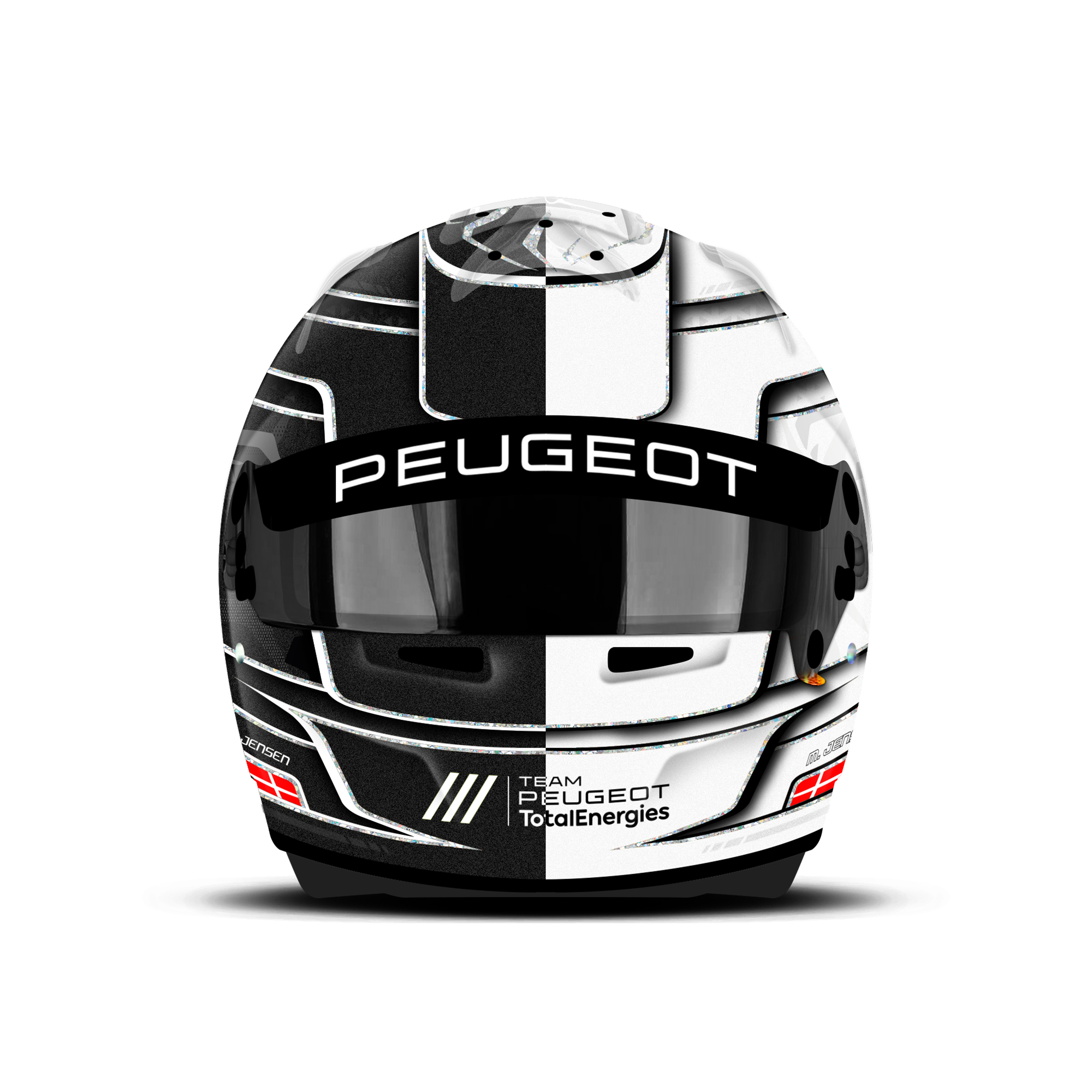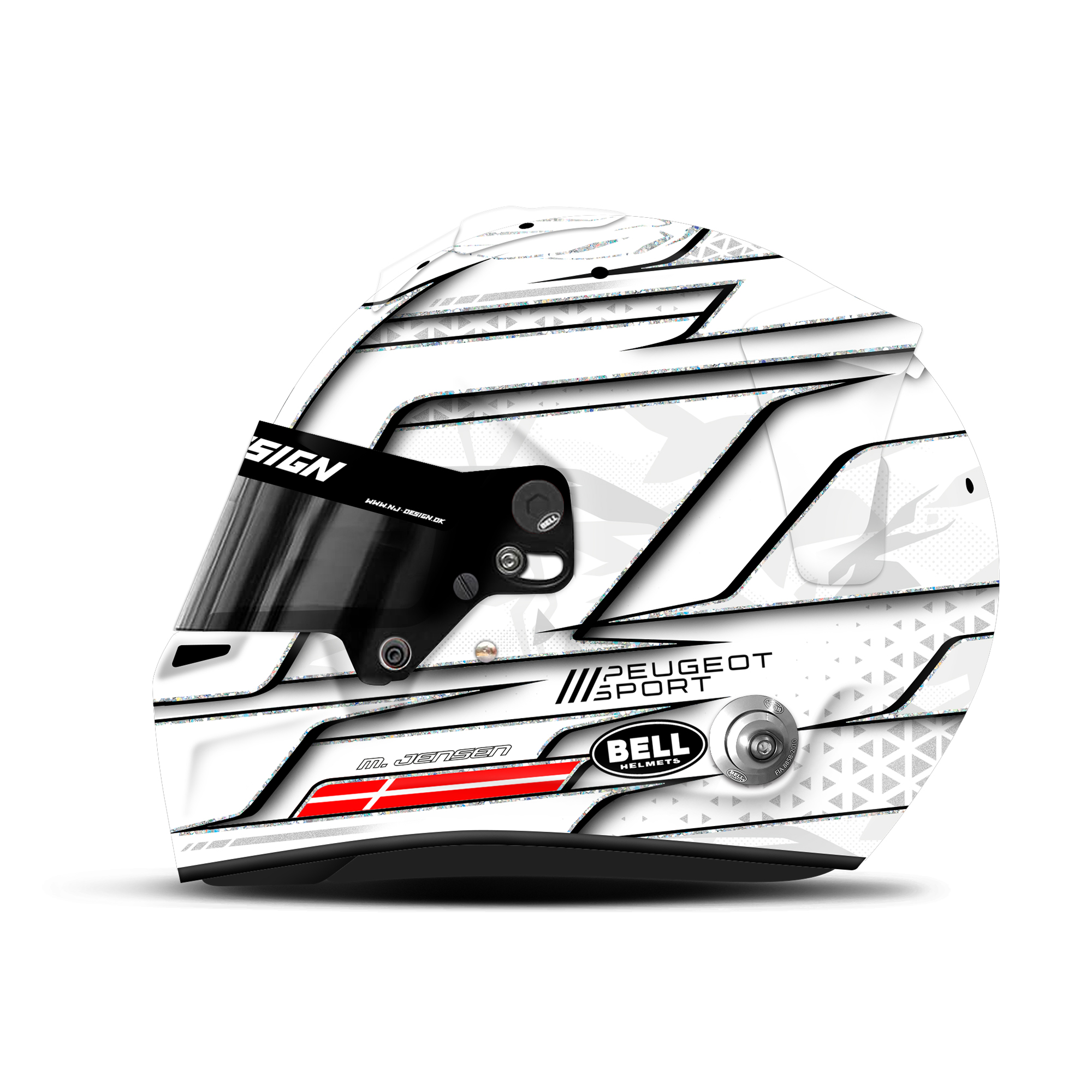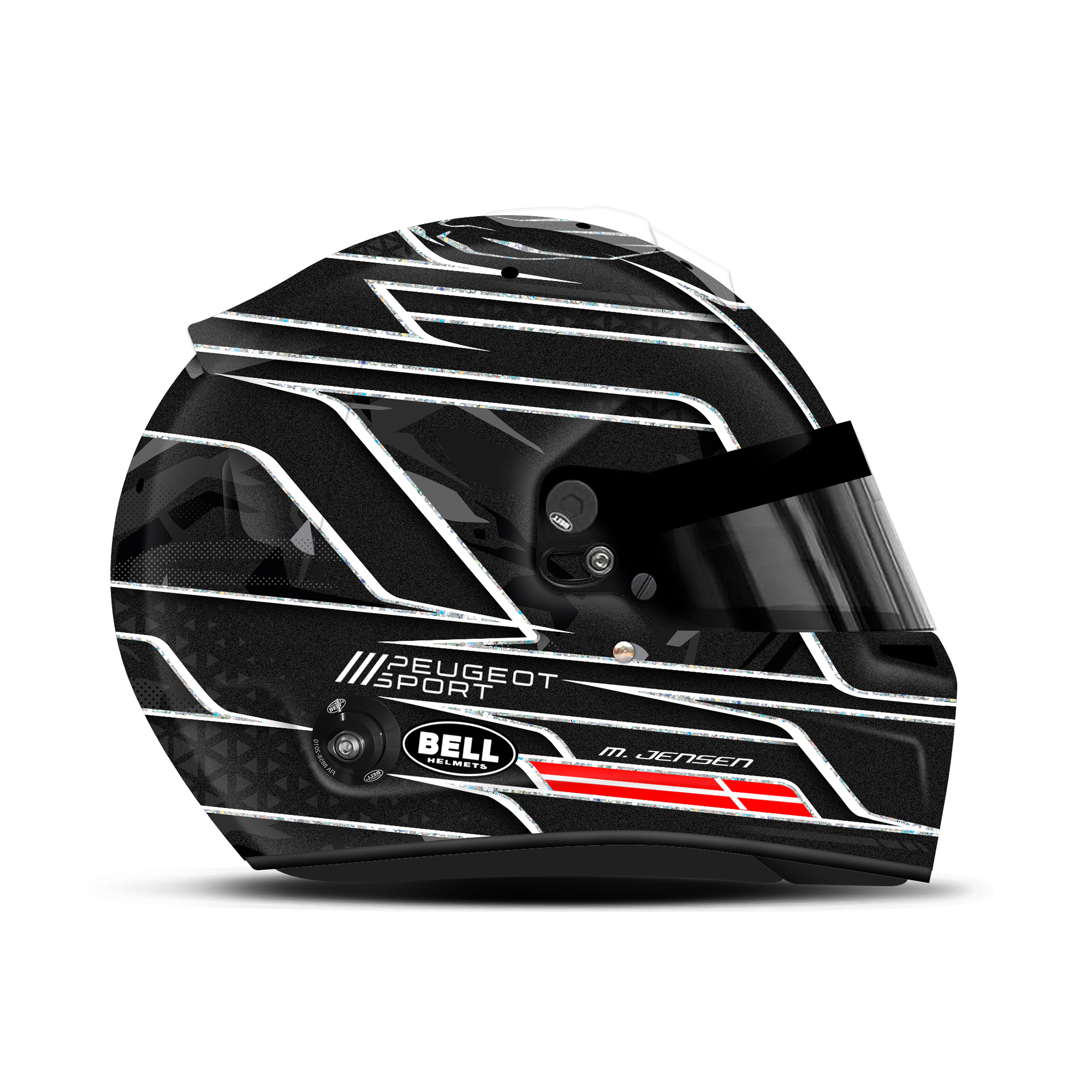 Custom helmet design for Mikkel Jensen is made for Le Mans 2025. The design is made on a Bell HP7 carbon helmet with matt finish. Below is a description of the helmet design.