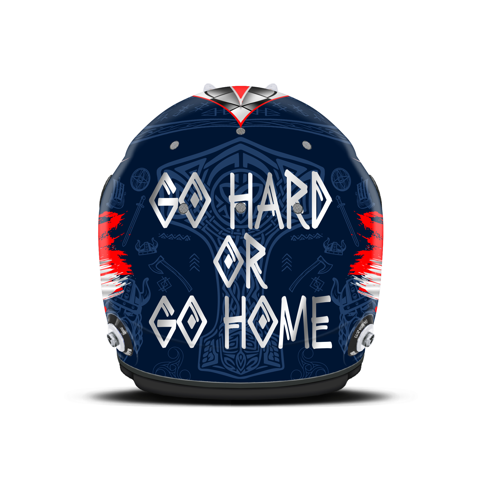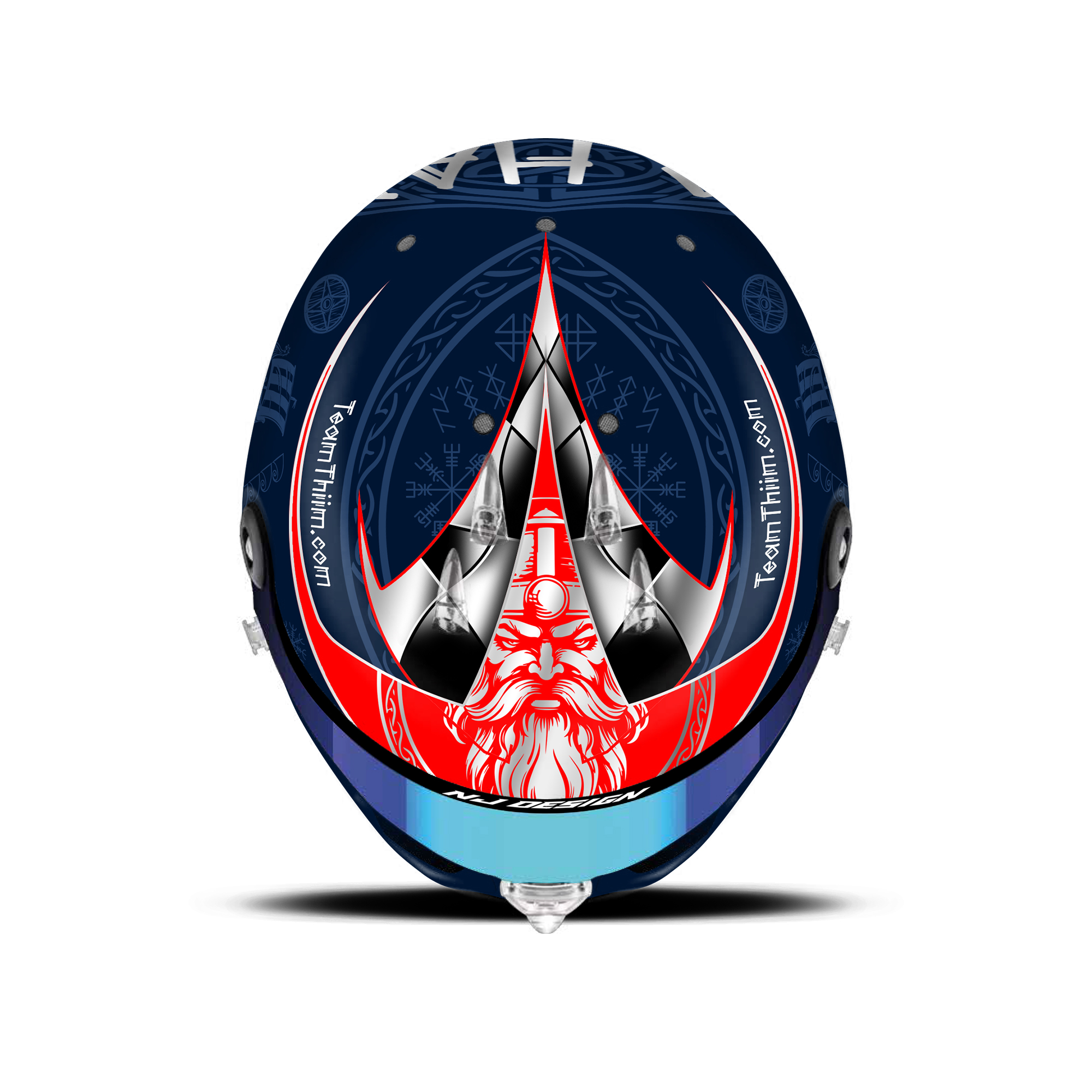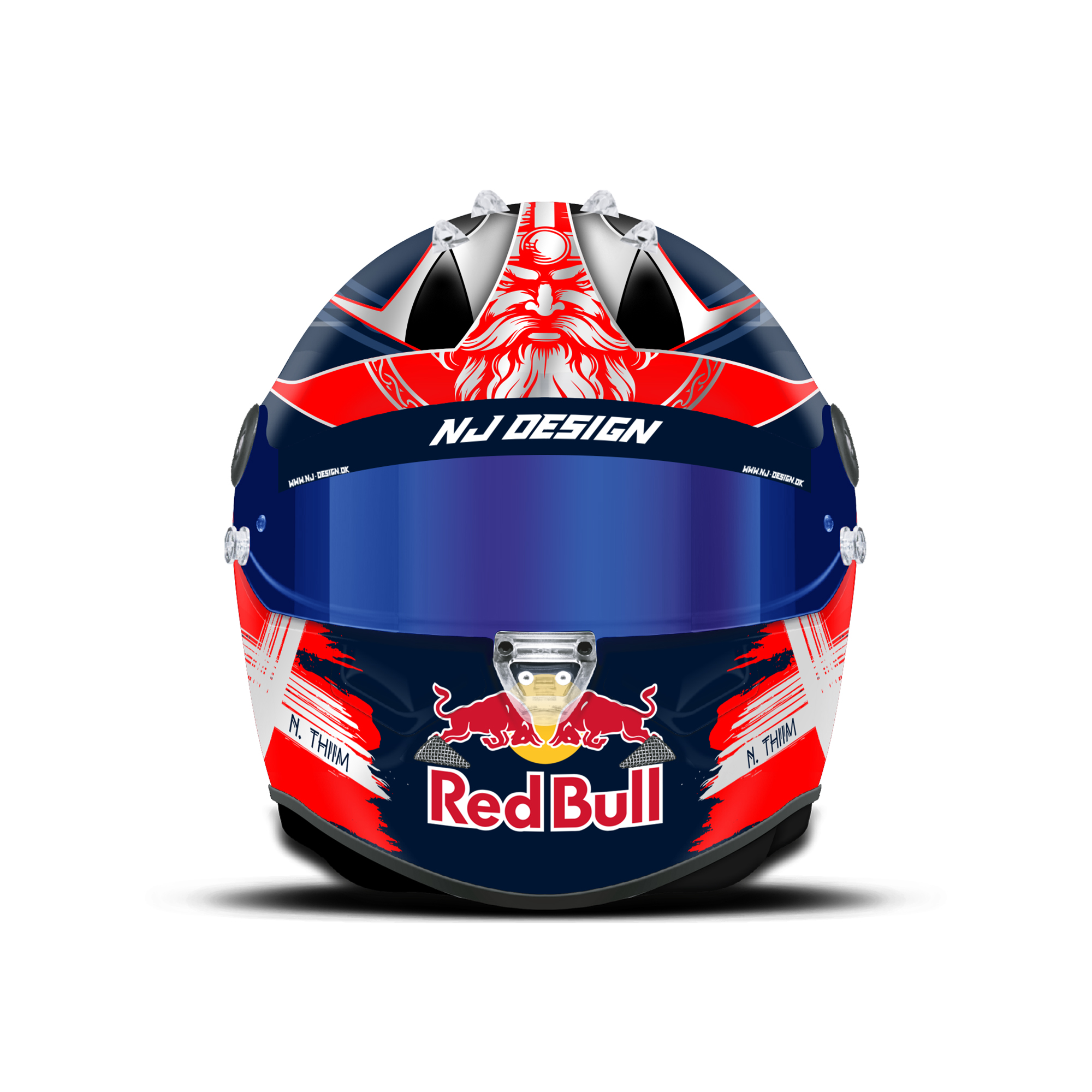 The custom helmet design is designed for Nicki Thiim. The design is made on a Schuberth SF3 helmet with gloss finish. Below is a description of the helmet design.