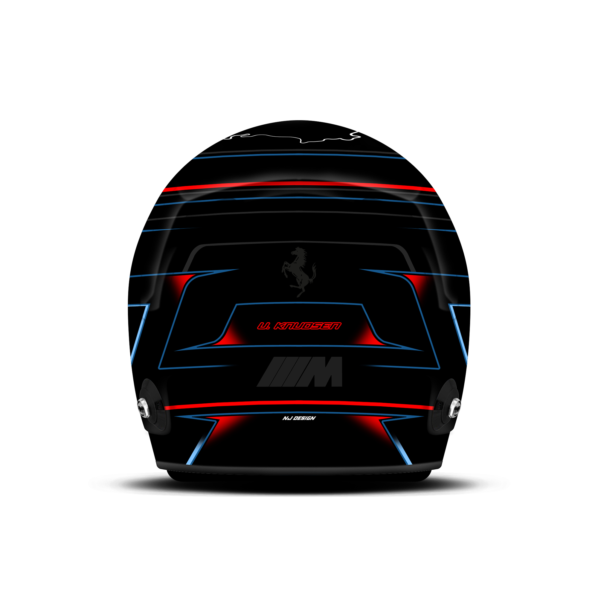 The custom helmet design is designed for Ulrik Knudsen. The design is made on a Bell HP7 carbon helmet with matt and gloss finish. Below is a description of the helmet design.