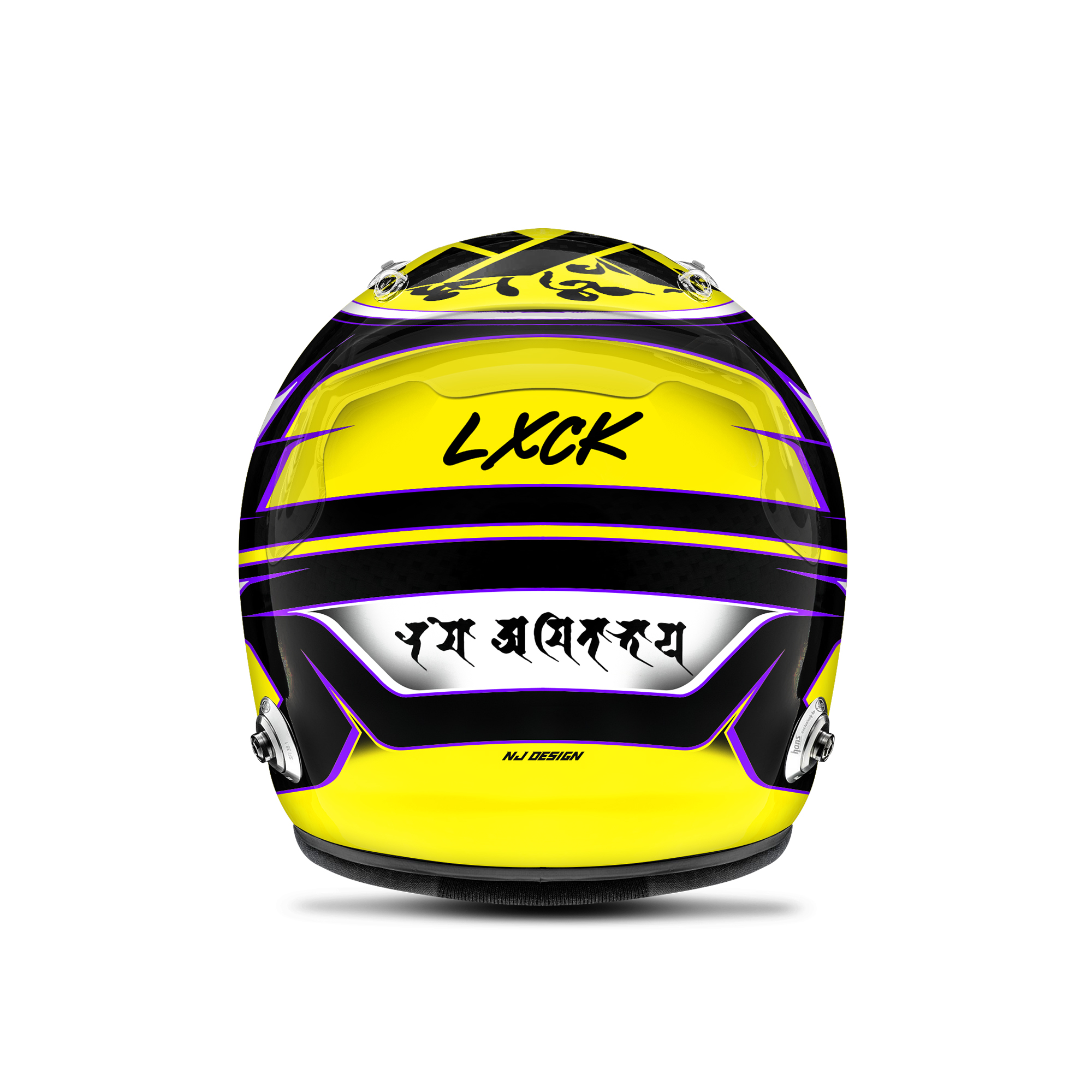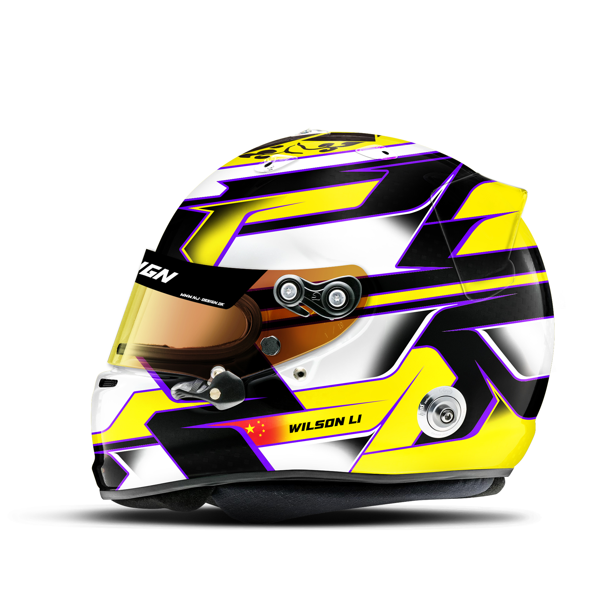 Custom helmet design designed for Wilson Li. The design is made on an Arai GP-7 FRP helmet with gloss and matt. Below is a description of the helmet design.