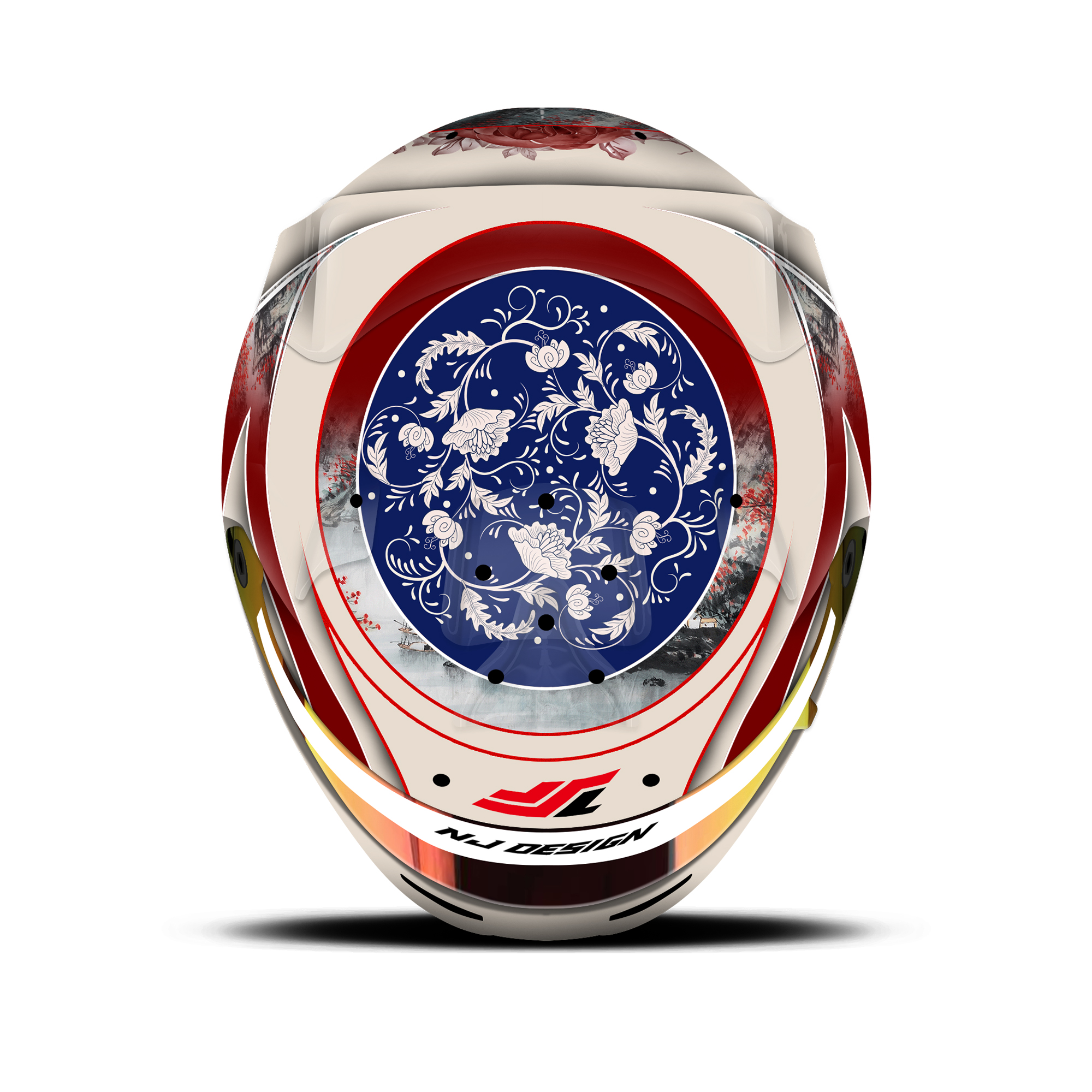 The custom helmet design is designed for Zayn Sun. The design is made on a Bell RS7 Pro helmet with gloss finish. Below is a description of the helmet design.